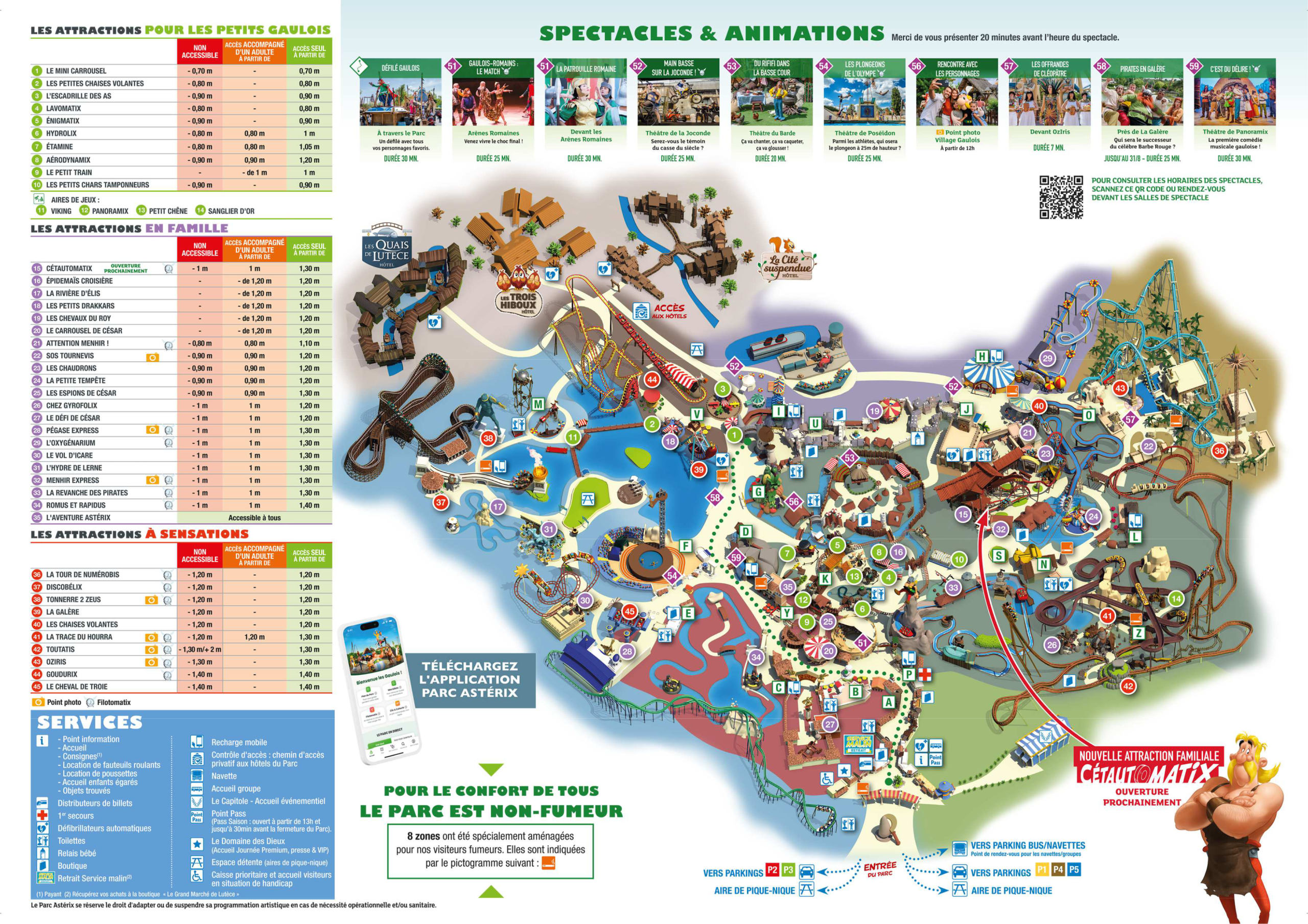 Le plan du Parc Astérix vous permet de vous repérer dans ce parc d’attractions unique en son genre, situé à Plailly dans l’Oise, à 35 km de Paris. Organisé autour de l’univers de la bande dessinée d’Uderzo et Goscinny, le parc propose 45 attractions réparties en plusieurs zones thématiques : la Gaule, la Rome antique, la Grèce antique, les Vikings et La Via Antiqua. Le plan est essentiel pour repérer les montagnes russes incontournables — Toutatis (le plus grand looping d’Europe), Tonnerre de Zeus et Goudurix — ainsi que les spectacles, la zone aquatique et les espaces dédiés aux plus jeunes.